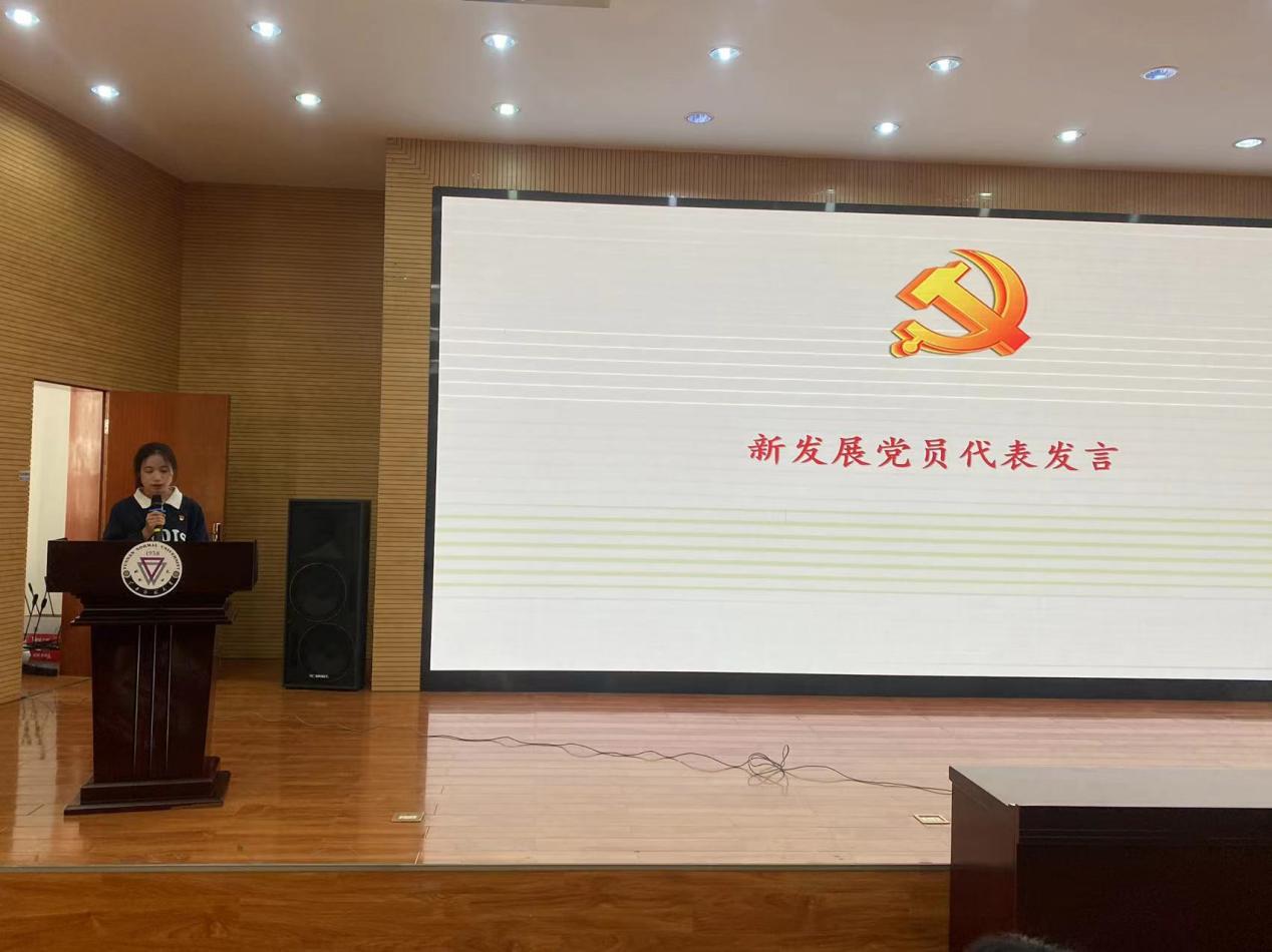 杨琼慧同志代表新发展的预备党员作了发言,她表示作为一名预备党员,我们要时刻以一名正式党员的标准严格要求自己,不断加强作风建设,要充分发挥共产党员的先锋模范作用,带头争先进、带头创佳绩、带头遵纪守法、带头弘扬正气。不忘初心,牢记使命,保持实事求是,与时俱进的精神状态,奋发进取、以求真务实的作风出色的完成各项学习和工作任务。同时,作为一名老员工我们要继承和发扬优良传统,坚定不移听党话、跟党走,立志做“有理想、敢担当、能吃苦、肯奋斗”的新时代好青年。