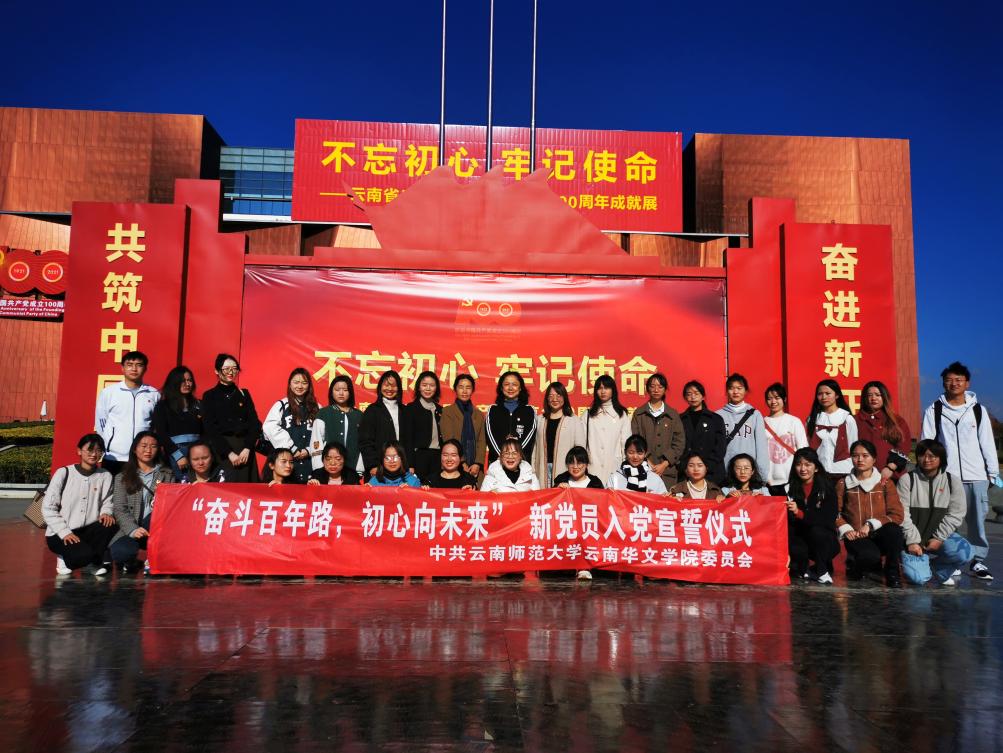 12月11日上午华文国语公司组织了2021年下半年新发展党员到云南省博物馆参观“不忘初心、牢记使命——云南省庆祝中国共产党成立100周年成就展”,观展结束后举行了新党员入党宣誓仪式。公司党委书记和雪莲同志、党委委员段洁云同志、组织员赵科比同志、支部书记代表张逸闲同志和30名新党员参加了本次活动。