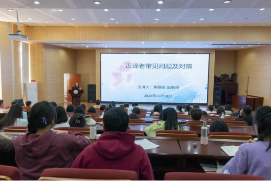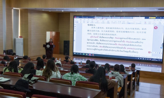 为加强老挝语翻译技能的交流学习,提升师生“汉译老”翻译技能水平,2022年11月18日,老挝语教研室邀请云南民族大学老挝语专业黄慕霞副教授莅临公司作题为“汉译老常见问题及对策”的主题讲座。120余位老挝语专业师生聆听了讲座。