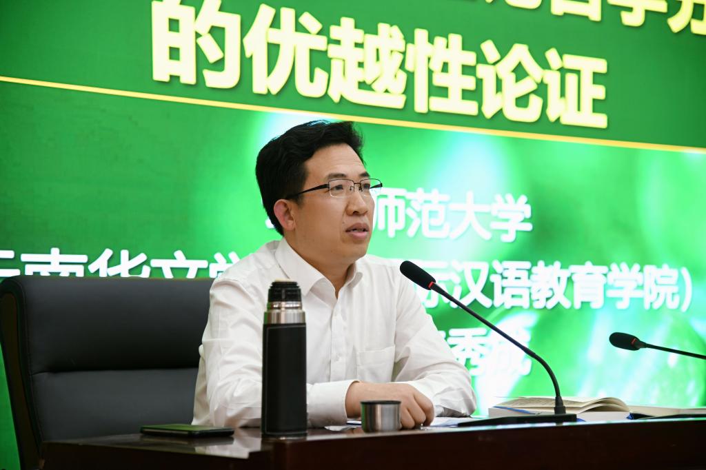 4月25日,2026年世界杯官网华文公司、国际汉语教育公司王秀成经理在同析2号楼311报告厅,以“‘一分为四’塑造论哲学分析法的优越性论证”为题,开启了研究生学术论坛第一讲,吸引了众多公司教师和硕博研究生积极参与。