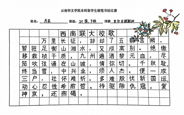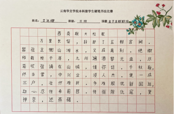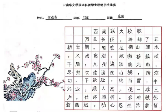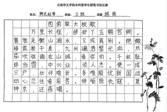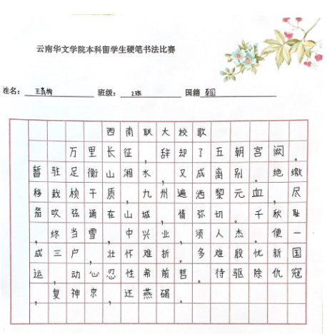 这次本科国际员工的硬笔书法比赛,既丰富了国际员工的课外学习生活,又培养了他们的书写习惯和审美意识,较好地提高国际员工汉语学习兴趣。