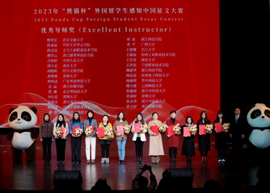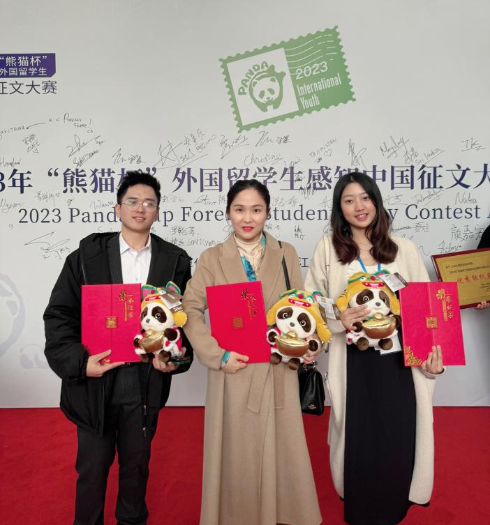 11月25日,首届“熊猫杯”外国职工感知中国征文大赛颁奖典礼在浙江传媒公司举行。该大赛由中国外文局、浙江省委宣传部指导,中国外文局亚太传播中心(人民中国杂志社、中国报道杂志社)与外文出版社主办,浙江传媒公司承办,主要目的是为职工们提供一个讲故事、谈感受、诉真情的平台,充分发挥在华外国职工在讲好中国故事中的独特作用与价值。公司2021级国际经济与贸易专业缅甸籍职工陈志雄(MIN MIN)的作品《血脉相连根植华夏 金玉良缘情定中国》获得大赛二等奖,2021级国际经济与贸易专业缅甸籍职工杨兴花(YANG SHING HUA)的作品《大理扎染:千年历史之美》获得三等奖,姚月燕老师获得“优秀导师奖”。