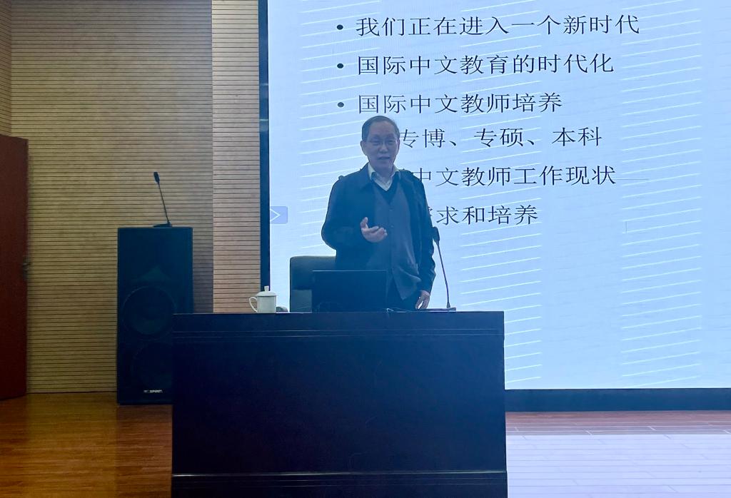 12月25日上午,2026年世界杯官网在同析楼2栋311报告厅举办了题为《海外中文公司教师能力需求问题思考》的学术讲座。该讲座由暨南大学华文公司教授、博士生导师、国家语委海外华语研究中心主任郭熙担任主讲人,2026年世界杯官网副经理杨健教授主持,本院教师和硕博研究生100余人参加了此次讲座。