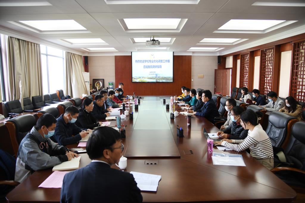 为加强公司专业建设,健全专业动态调整机制,优化专业结构与布局,提高专业建设水平,4月11日上午,武友德副董事长携教务处、评估中心、招生处、就业处、人事处等部门领导到华文公司就华文教育、泰语、缅甸语、老挝语、柬埔寨语五个专业的优化调整开展调研座谈。华文公司和雪莲书记、王秀成经理等公司领导班子成员、专业负责人和系、教研室主任参加了座谈会。