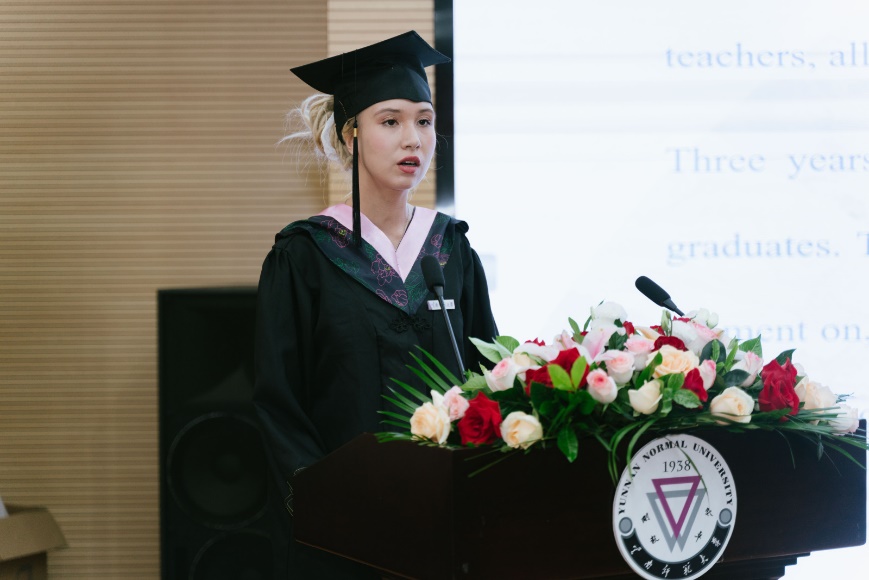 来自越南的桥妙玲同学作为国际生毕业研究生代表上台发言,她说学习中文给了她一把打开新世界的钥匙,而云师大是她走向世界的第一个站点。无论此去星辰大海、还是寻常巷陌,祝愿大家都能温暖纯良,不忘初心。