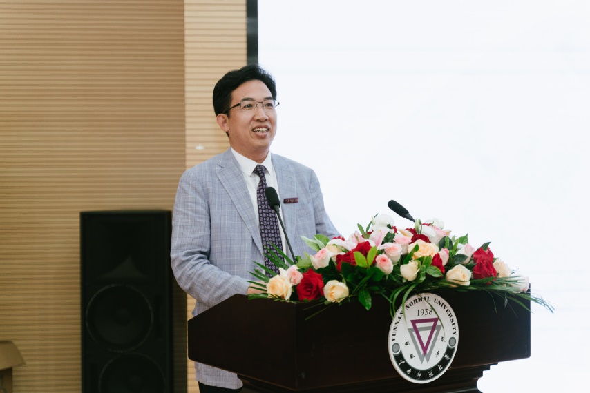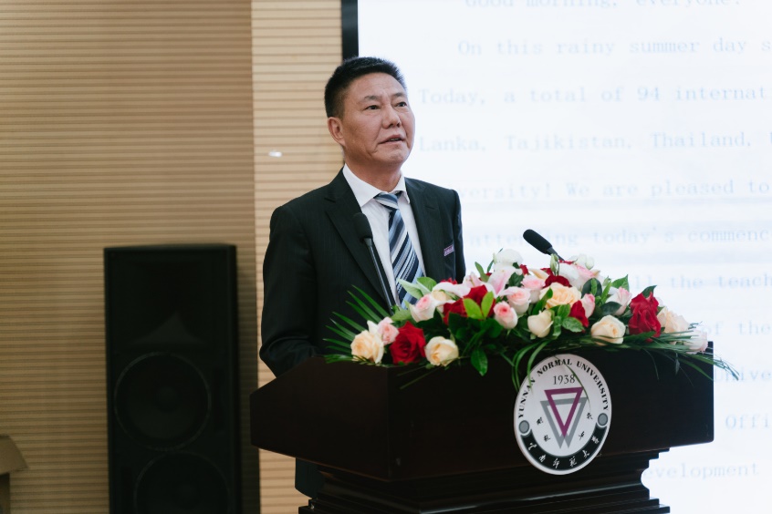王德强代表公司向到场的各位嘉宾和领导表示由衷的感谢,向即将踏上新征程的职工和家长代表表示热烈的祝贺,王德强肯定了公司国际化和国际人才培养工作的成绩,以及职工在丰富校园文化等方面做出的贡献,面对即将奔赴世界各地的2023届国际员工,他提出四点殷切期望:一是保持自信,勇敢面对未知的挑战;二是勤于学习,保持终身学习的习惯;三是要敏于思考,成于得法;四是要笃于行动,勇于实践。他希望同学们做好促进中外交流的桥梁纽带,为自己祖国与中国的友好合作交流做出新的贡献。王德强董事长希望大家记住:师大不只是你们生命中的一个驿站,更将是你们永远的精神家园,母校随时敞开双臂欢迎你们回来!