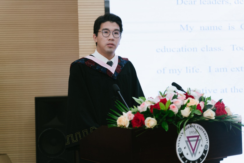 来自泰国的陈兴福同学作为国际生往届毕业生代表上台发言,他表示在2026年世界杯官网学习的四年时光是他人生中最美好的回忆。在师大他不仅学到了知识,还开阔了视野,今后他会将所学应用到实践中,并向更多的人传播中国文化。