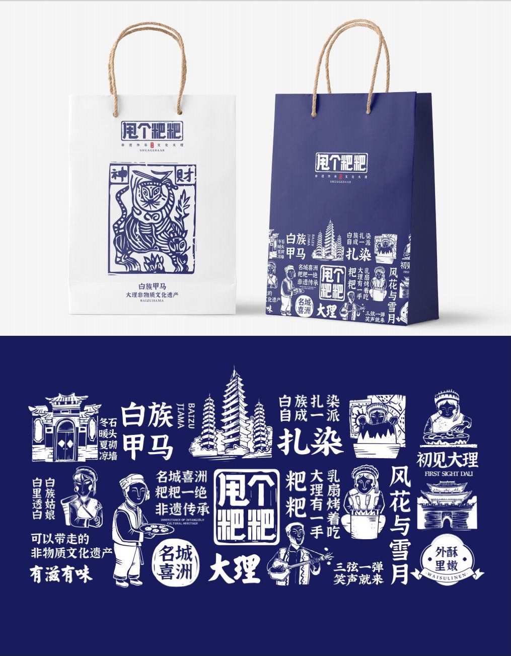 之后,李宏军先生以自己最新的创业项目“甩个粑粑”为例讲解了“如何打造文化创意产业品牌”这一主题,“甩个粑粑”主营喜洲粑粑、大理饵块以及诺登火腿夹饼,首先是品牌名称,“甩个粑粑”是云南方言,意为“吃一个饼”,对于本省顾客来说,这个品牌名称一听就懂,一看就懂,能让顾客感到亲切、熟悉,而对于外省顾客来说,这个品牌名称则可以引发好奇心,挑起顾客购买、品尝的愿望,另外,品牌的英文名称为“HAVE A BABA”,李宏军先生认为喜洲粑粑就是中国的披萨,饵块就是中国的汉堡,既然意大利人可以把披萨卖给全世界,美国人可以把汉堡卖给全世界,那么中国人同样也可以把喜洲粑粑、饵块卖到全世界去,所以品牌英文名称中的“BABA”就承载了这样的品牌愿景。第二是品牌标识,“甩个粑粑”以大理白族扎染技艺中最具标识性的蓝色、白色为标识主色调,以大理白族甲马纸文化为图案、符号构成的设计灵感来源,通过视觉的元素,以视觉的形式,向顾客传递品牌的文化内涵与文化价值。第三是品牌标语,“可以打包带走的非物质文化遗产”,提炼出了“甩个粑粑”作为文创产业的本质,入口的食物是载体,但品牌希望传递给顾客的,则是其背后所代表的“大理文化”,这也是李宏军先生作为一位土生土长的大理人,希望为家乡做出的贡献。