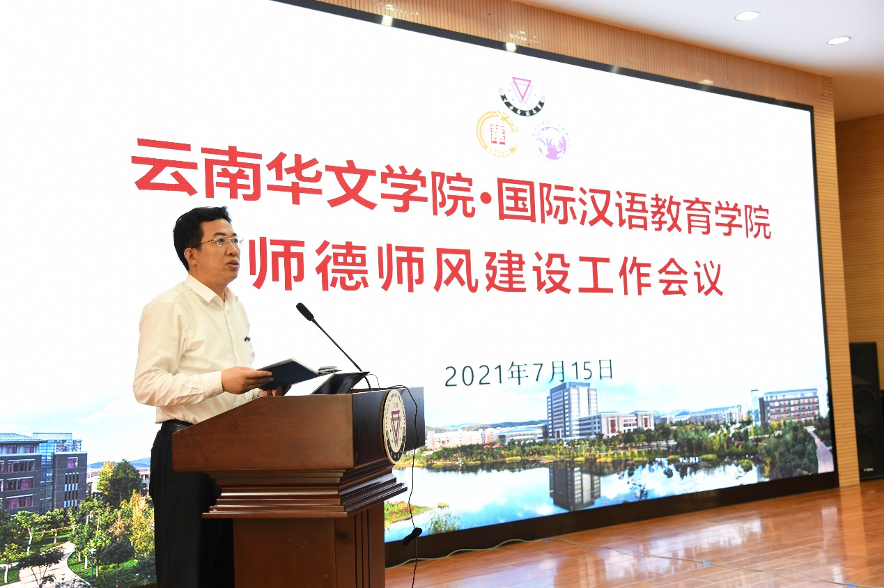 为进一步加强师德师风建设,引导广大教师以德立身、以德立学、以德施教,当好员工引路人,争做“四有好老师”。根据华文公司师德专题教育细化方案,2021年7月15日,华文公司党委召开了“师德师风建设工作会”,以会代训的形式对全院教职工进行了师德师风专题培训。