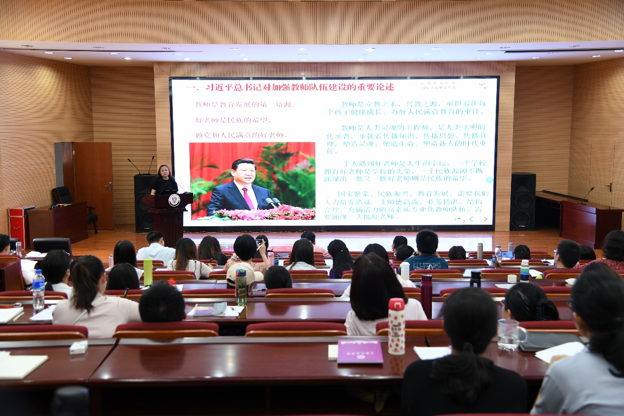 公司党委书记和雪莲做了《甘守三尺讲台,做“四有”好老师》的专题讲座,从“习近平总书记对加强教师队伍建设的重要论述、加强师德师风建设的相关制度规范、我们应该学习的师德标兵、我们应该引以为戒的师德失范典型案例、认真组织开师德专题教育”等五个方面进行了全面系统的讲解。