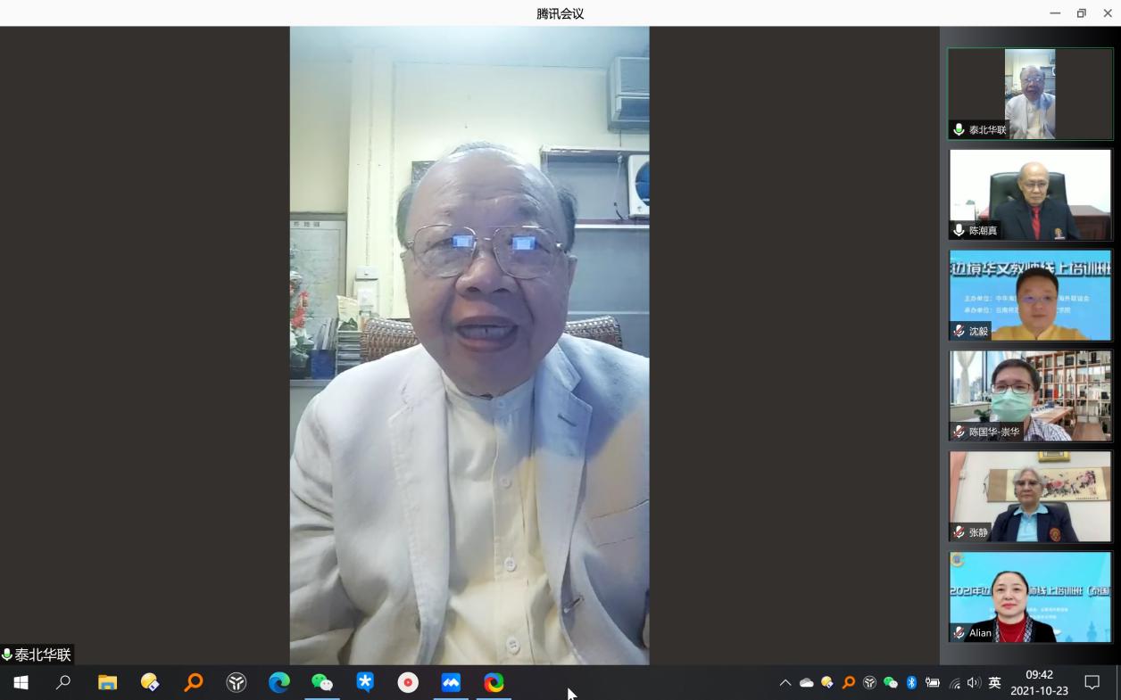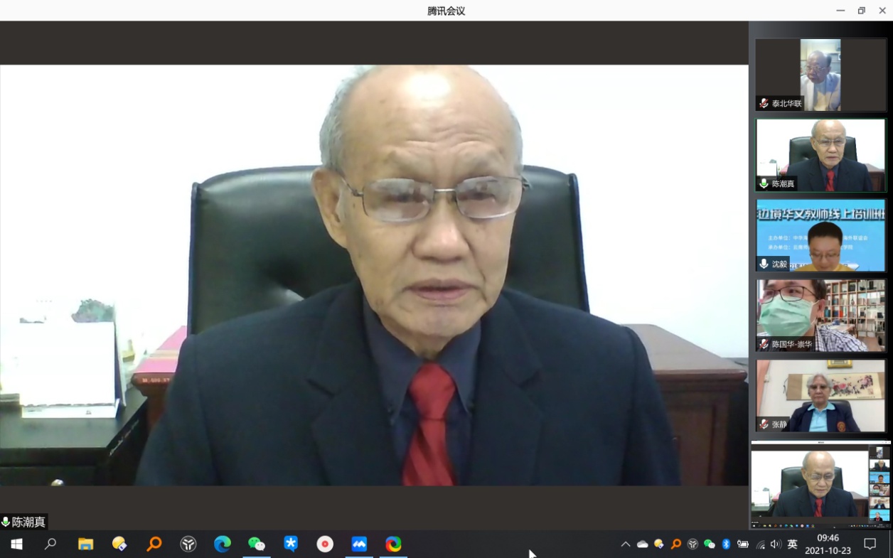 泰国崇华新生华立基金会主席、崇华新生华立公司法人代表陈潮真主席在致辞中表示,此次培训班项目充分体现了中国政府对海外华文教育的重视和对华文教师的关怀。此次线上培训内容丰富多彩、切合实际,受到了崇华教育者的广泛支持,崇华新生华立公司将组织好参训学员认真完成培训任务。