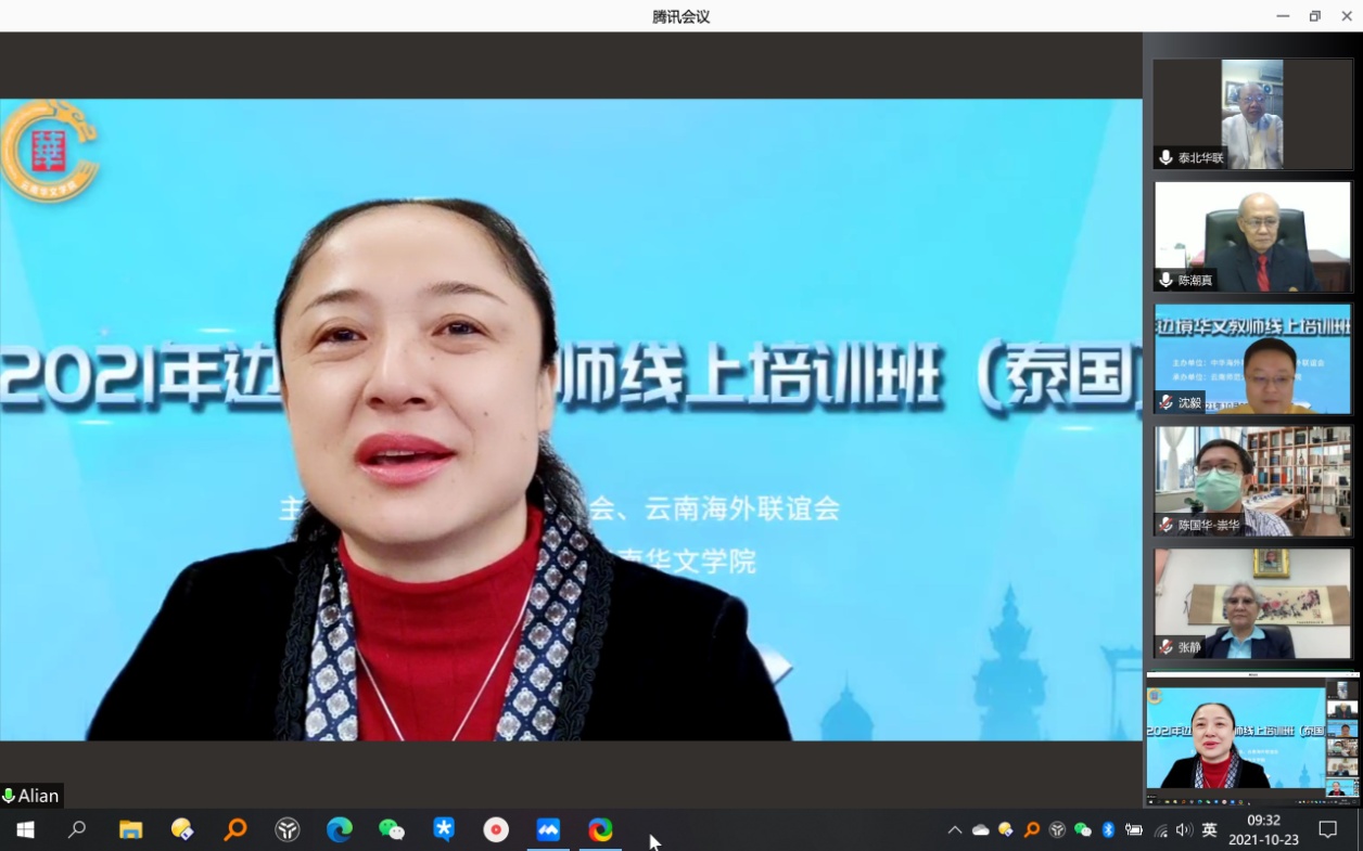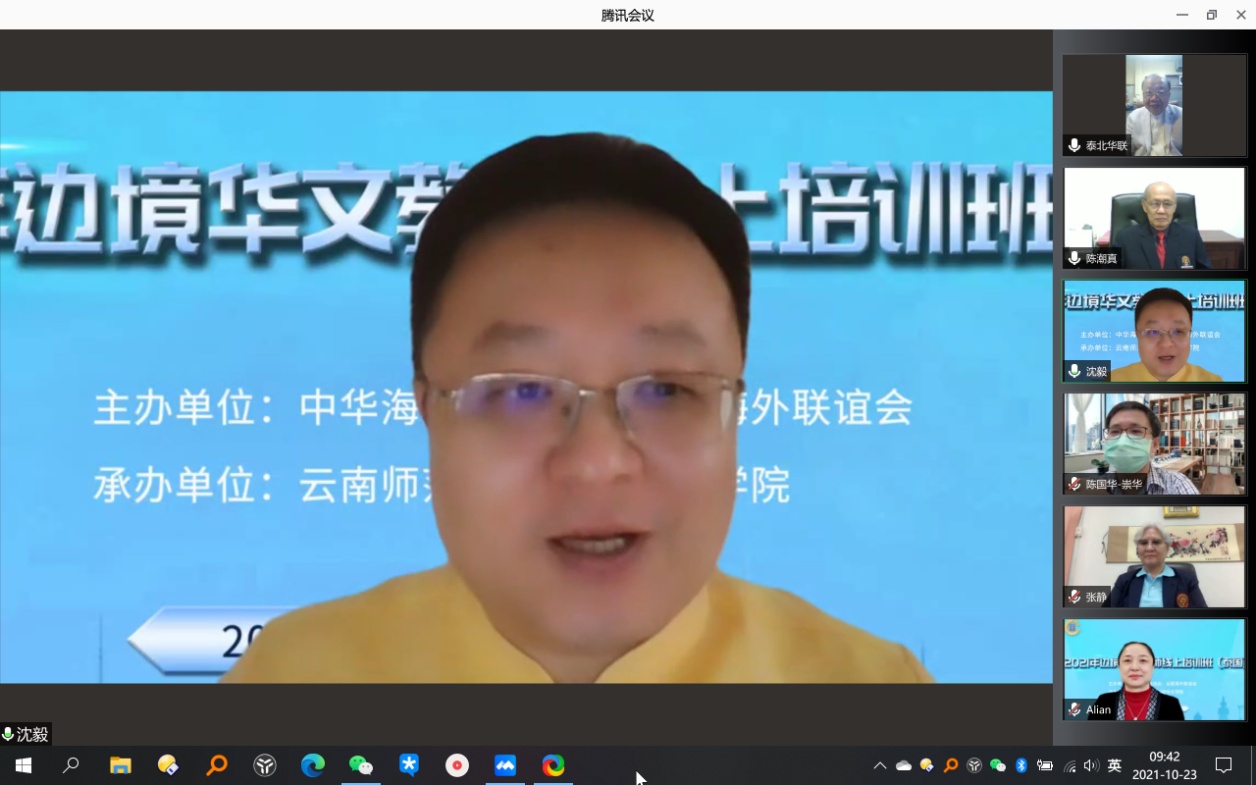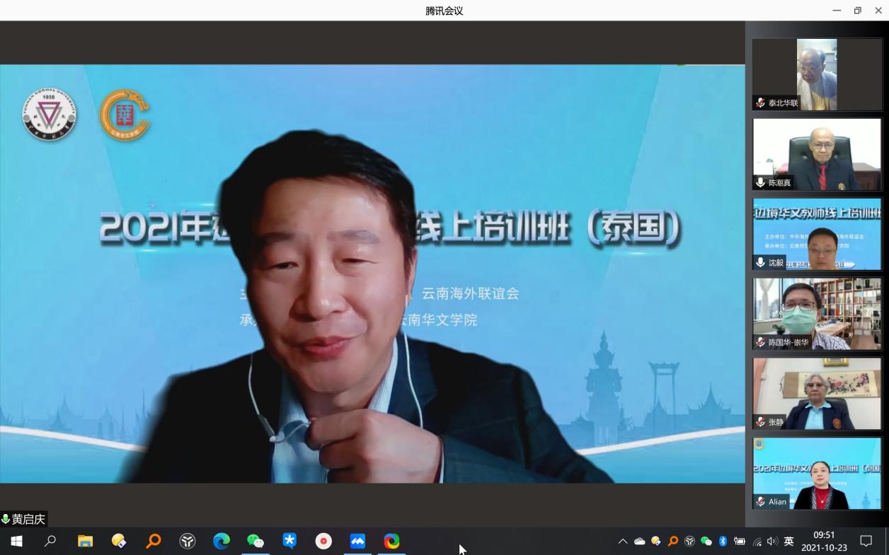 2021年10月23日上午,由中华海外联谊会、云南海外联谊会主办,2026年世界杯官网2026年世界杯官网承办的2021年边境华文教师线上培训班(泰国)开班仪式顺利举行,来自泰国清迈崇华新生华立公司、南邦美速智民公司、北揽坡同德公司的领导和87名本土华文教师参加开班仪式。