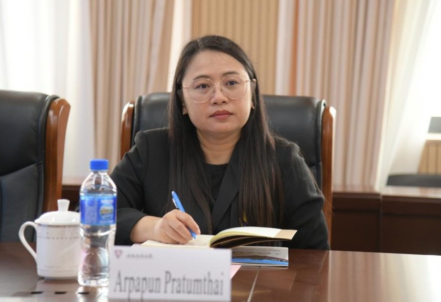 帕尧大学教育公司Arpapun Pratumthai 博士介绍了帕尧大学的建校历史、团队、本科双学位项目、硕士项目、培养目的,并表示希望与公司达成合作。