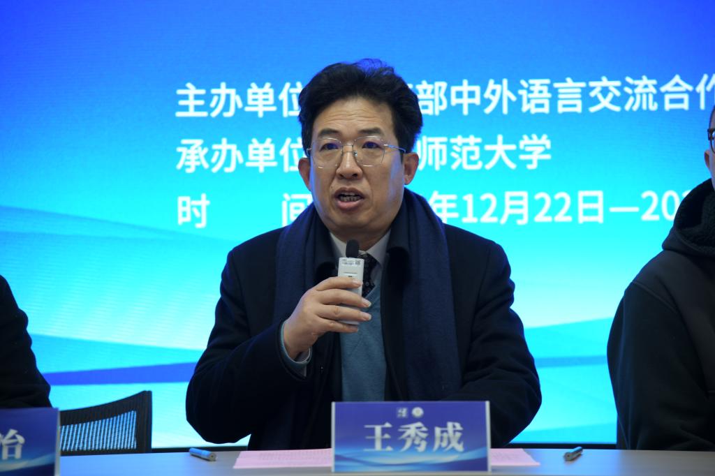 王秀成指出在中泰建交五十周年的重要节点,国际中文教育志愿者是中泰人文联通的重要力量,肩负着推动两国友谊的责任,希望学员一是要珍惜岗前培训机会,沉下心、练硬功,夯实履职根基;二是要坚守教育初心,做志愿精神的传承者、语言文化的传播者;三是要以语言为舟、以热爱为帆,在泰国教学征程中不负韶华、不辱使命,为谱写中泰人文交流新篇章和促进国际中文教育事业发展贡献青春力量。