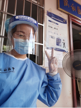 第一次穿上防护服,严严实实包裹的像个粽子,再次踏上国门边境,恍如隔世般,一月前还和同学千里奔波,只为逃离,现在反而主动踏上归途。即使气温炎热,但看到回国的人们脸上洋溢的喜悦与激动,那一声“回国啦!”所包含的希望于与解脱,仿佛不久前的自己,再次深刻认识到了什么叫做背后有祖国。因排班原因,第一天我就独自工作整整一天,早中晚班一直坚守在岗位上,虽然身体疲惫,精神却高度兴奋。帮助回国的人们填写入境健康申明卡,看到他们开心的样子,我也变得更开心了。