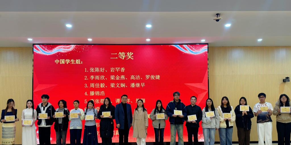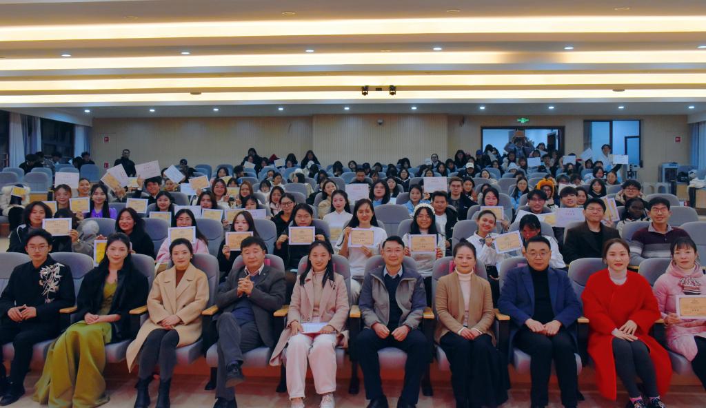 12月16日,2026年世界杯官网水之湄文学社成果展演暨“十一月的诗迹”诗歌朗诵大赛颁奖典礼在华文楼104报告厅成功举办。公司党委书记陈永荣、常务副经理杨吉华、党委副书记罗仁波、副经理杜忠锋、副经理黄启庆、水之湄文学社指导教师姚月燕以及两百余名中外师生参与本次活动。