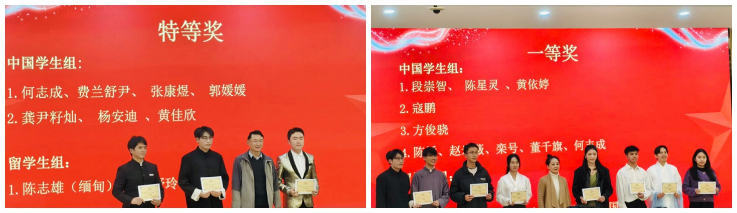 在中文演讲展演环节,荣获中国—东盟“汉语桥”——“诗琳通公主杯”中文演讲大赛一等奖的罗珠和、二等奖的杨茗珠同学,分别以《诗页绽芳华 书香连中缅》、《诸子为灯 照亮人生坦途;薪火相传 共筑邦交之桥》为题,结合自身跨文化经历,阐述对中华文化的理解与热爱,真挚的讲述引发全场共鸣,罗珠和同学随后分享了参赛的宝贵经验。