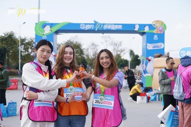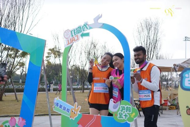 活动现场,国际员工们在起点的“鸥约40年”主题打卡装置前驻足合影,在专业教练带领下参与“鸥舞小课堂”热身,出发前与全体跑友一同放飞象征希望与约定的七彩纸飞机,将对红嘴鸥的祝福与对昆明的热爱融入其中。6公里的赛道上,脚下是彩色跑道,身旁是波光粼粼的滇池与翩跹鸥影,同学们或专注奔跑享受运动乐趣,或放慢脚步欣赏滇池西岸如诗如画的生态美景,友伴同行的默契与跨国友谊的真挚在赛道上交织绽放。